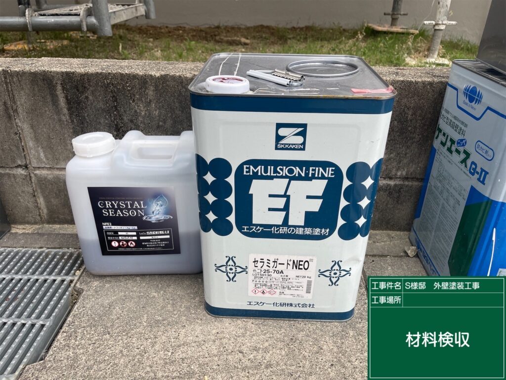 外壁塗装ご提案内容としましては、お客様より美観性、耐候性に優れた塗料のご提案を希望されておりましたので、高耐久性と美観性の優れた無機エクスカリバーでご提案させて頂きました。こちらの塗料は公表されている無機含有率の高さで、高耐久性は勿論の事、美観性も維持してくれる塗料となります。また美観性を底上げしてくれる仕上げ材として、弊社の取り扱っているクリスタルシーズンという光触媒コーティングのご提案もさせて頂きました。こちらは塗料仕上げ剤として最後の工程に外壁や付帯部、などお家全体に吹付けるコーティング材となります。