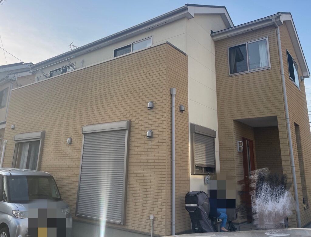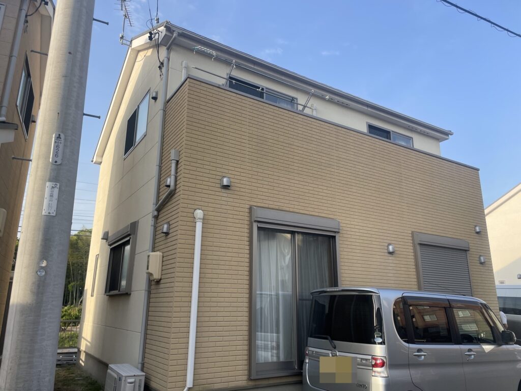 数ある塗装会社より弊社をお選びいただきありがとうございます。S様のお家は築15年、アイディホームさんのお家で、窯業系サイディングボードの外壁で、経年劣化に伴う色あせが目立ちました。洗浄(下地調整)後、下塗りを施し主材塗料にて中塗り・上塗りを行います。屋根に関しましては、S様のお家はアスファルトシングルとなります。屋根のカバー工法がご希望ということでしたので、ガルバリウム鋼板製の屋根材を被せる工法のご提案をさせていただきました。。軽量なので耐震性は損ねづらく、耐久性・メンテナンス性・断熱性が上がる施工となります。目地のコーキングに関しましては、ひび割れが目立ちました。目地は増し打ち工法にて、開口部やその他箇所は基本的に増打ち工法にて補修致します。ながもち君では高耐候性コーキング材のSRシールH100を標準仕様としています。ベランダ防水に関しましてはFRP防水が施されております。現状、浮き箇所や亀裂は無く良好な状態だと思われます。防水層を保護するトップコート工法にてご提案致します。