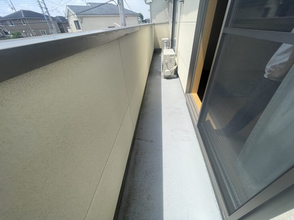 FRP防水が施されています。捲れや浮き箇所はない状態だと思います。防水層を保護するトップコート工法をご提案致します。