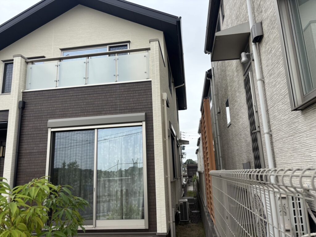 Y様のお宅は、築15年、住友林業さんのお家の初めての外壁屋根塗装工事となります。外壁に関しましては経年劣化に伴うチョーキング現象、コーキングの劣化が目立ちメンテナンスの必要がありました。窯業系サイディングボードの外壁で、洗浄(下地調整)後、下塗りを施し主材塗料にて中塗り・上塗りを行います。特にバルコニー壁や西面の壁は日当たりが良く、膨張収縮が起こり続けております。タイル部分はクリアー塗装にて施工させていただきます。